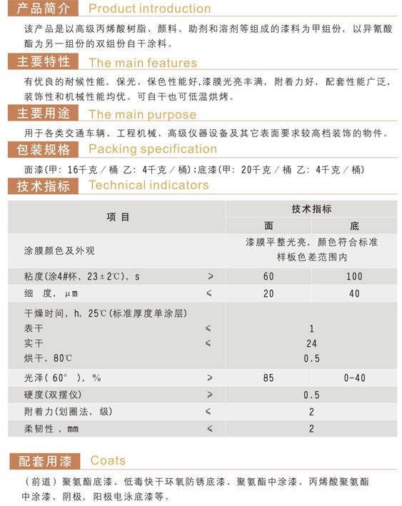 各色丙烯酸聚氨酯面漆(双组份)